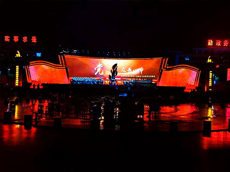 由中共河津市委、河津市人民政府主办的 “党在我心中”河津市庆祝中国共产党成立100周年文艺晚会,于 6月25日晚8时在龙门广场隆重举行。该文艺晚会由2台幻影服务器控制现场总面积高达590平方米主屏与两侧异形屏,实现超大异形LED屏幕的播控拼接,画面融合严丝合缝,显示完整流畅,打造出高级的视觉体验。